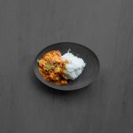 - Voeg de currypasta toe en bak nog een minuutje mee.