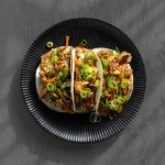 - Vul elke tortilla met een portie van het varkensvlees, Shiitake en koolsla.